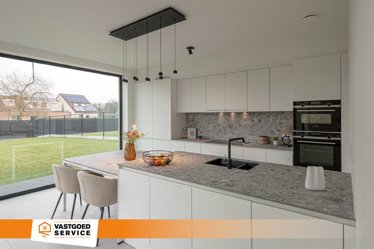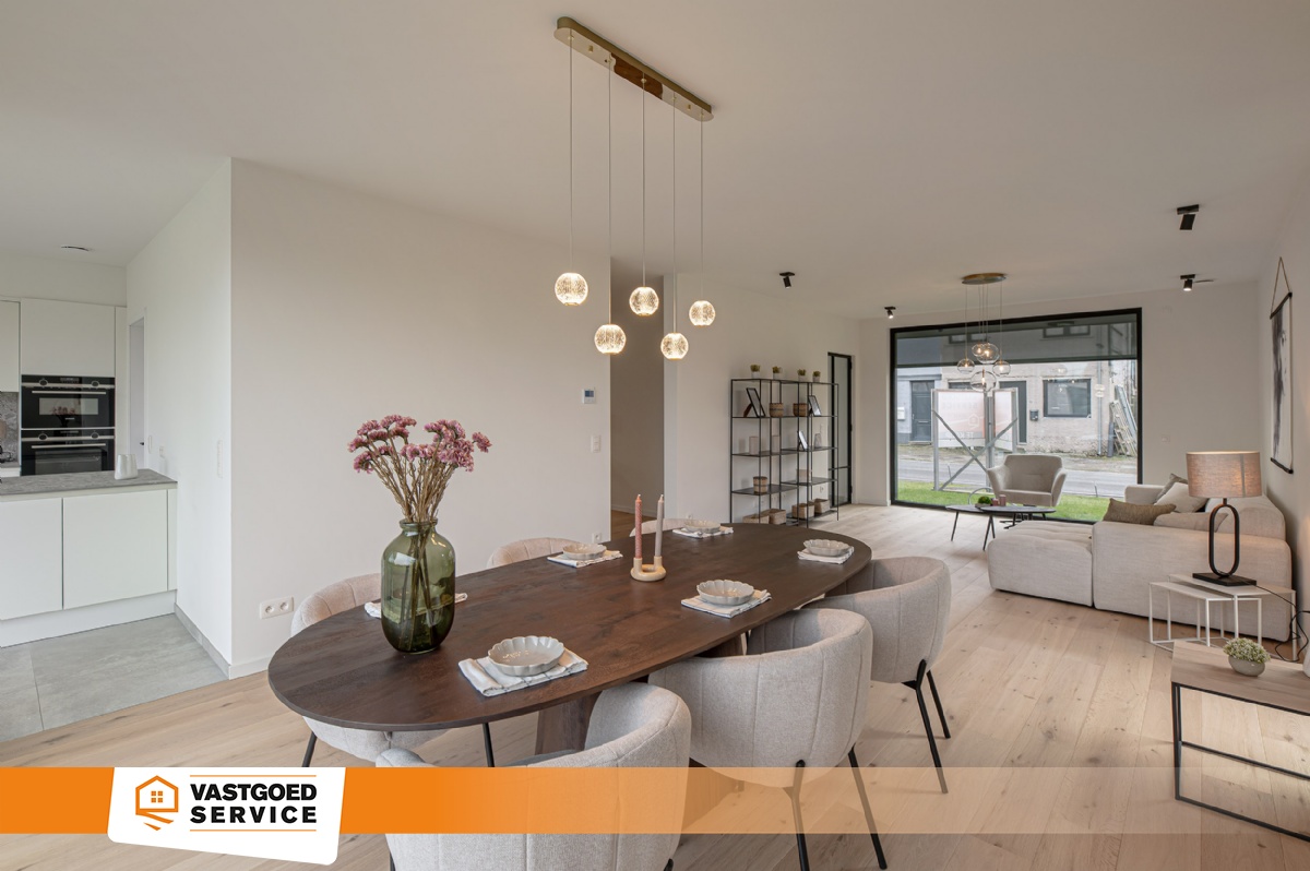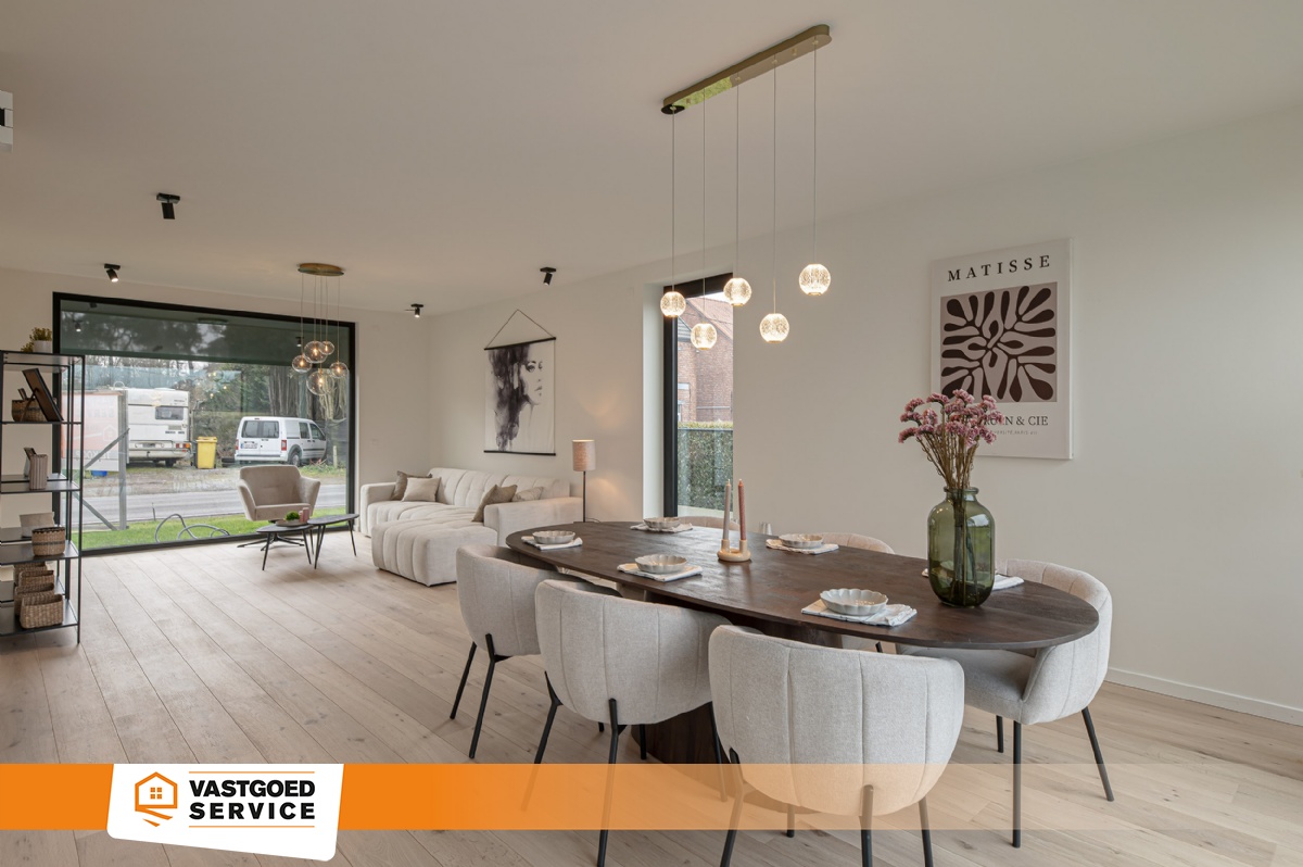 U heeft een budget (kosten in) ter beschikking van 630.000 €? Normaal gezien kan u dan 529.000 € besteden aan uw nieuwbouwvilla. U moet immers nog 21% btw bijtellen. Bij deze villa kan u evenwel genieten van het uitzonderlijke btw-tarief van 6%. Plots is deze geweldige A+ villa van 582.500 € dus bereikbaar voor hetzelfde eindbudget van 624.450€. Unieke kans! Deze moderne CO² neutrale A+ villa is top gelegen nabij het natuurgebied Keiheuvel en op fietsafstand van winkels en school. De villa is gebouwd op een perceel van een 600m² en beschikt dankzij zijn doordachte architectuur over veel lichtinval en een luchtig geheel, met ruimtes die naadloos in elkaar over gaan. Via de grote glaspartijen achteraan krijg je vanuit de leefkeuken direct toegang tot het terras en de ruime tuin. Op de verdieping vindt je de badkamer terug en 3 ruime slaapkamers, waarvan de master beschikt over dressingmogelijkheid. Perfect geschikt dus voor mensen die van ruimte houden. De villa is gebouwd met top materialen en oog voor detail: top ingerichte keuken, pré-airco, alu ramen, parket… Een zeldzame combinatie van architecturale klasse, luxueuze afwerking en een uiterst energiezuinige bouwstijl aan 6% btw (o.v.) Het A+ label staat garant dat de villa meer energie opwekt dan het zelf verbruikt. Beter bouwen kan niet! Kosten in (BTW en schrijfgeld) kost deze villa 624.450€ Voor verdere informatie kan U steeds terecht op ons kantoor. 014/82.15.15.