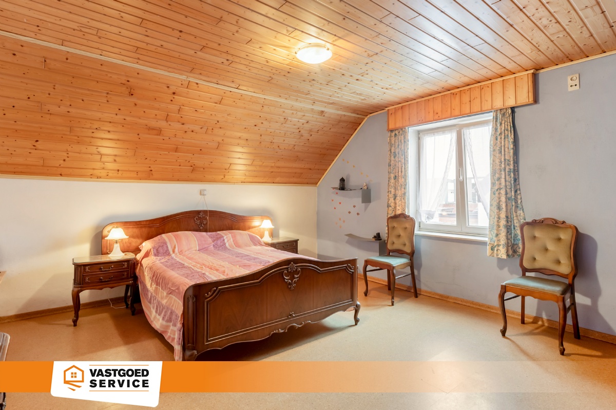 Deze leuke en best ruime (216m²) woning met 4 slaapkamers is rustig gelegen. Mist wat aanpassingen (o.a. zonnepanelen ,airco’s, betere dakisolatie, …), geen al te grote kosten (ramen, deuren, dak, enz… is immers allemaal al gebeurd) bekom je hier een gunstig EPC D score of lager. Belangrijkste troeven : • 3 zeer ruime slaapkamers en 1 kleinere met allemaal vliegenramen • Dak vernieuwd geweest (2005) • Zeer veel lichtinval • Ruime en praktische keuken met zeer veel opbergmogelijkheden en zicht op de tuin • Ramen en deuren vernieuwd, vloeren, verwarmingsketel, badkamer, enz… • Zeer ruime inkomhal • Ruime (circa 32m²) garage met automatische poort en smeerput • Kelder en bergzolder voorzien Kortom een leuke woning met veel potentieel dat zeker een bezoek waard is! Voor verdere informatie kan u steeds terecht op ons kantoor. 014/82.15.15.