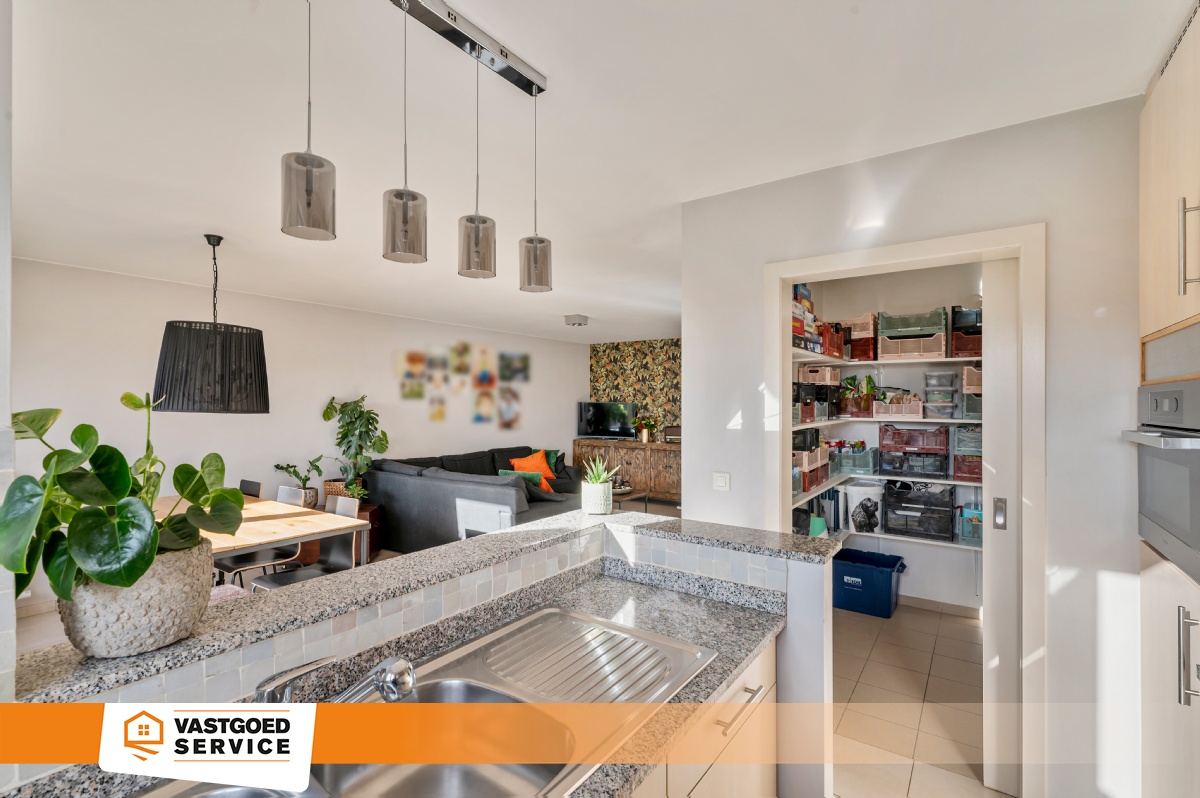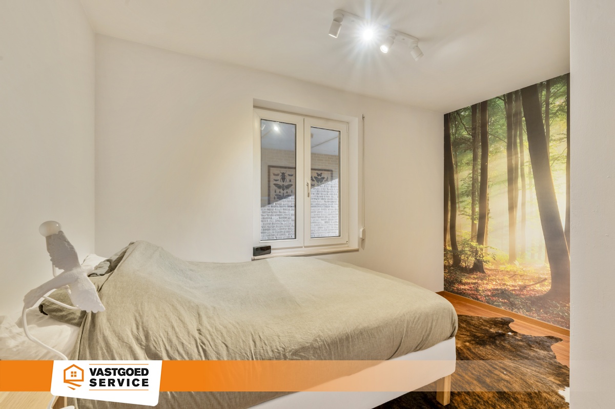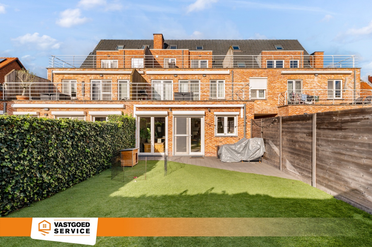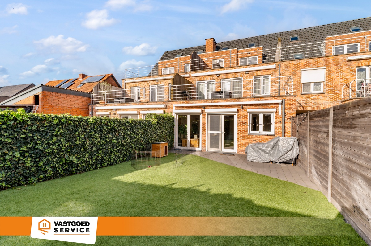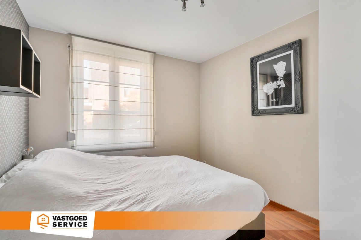Dit ruime en gelijkvloerse appartement met 3 slaapkamers en een eigen zon overgoten zuid gerichte tuin met terras, is op een boogscheut gelegen van het centrum van Mol, doch ook zeer strategisch gelegen nabij alle verbindingswegen naar de omliggende gemeenten. Hier alle troeven van dit unieke appartement : • Energiezuinig (epc B) + elektriciteit conform • Rijkelijk veel lichtinval in het appartement door o.a. de grote raampartijen • Ruime (circa 18m²) eigen garage • Eigen zuid-gerichte tuin met terras en poortje naar de aansluitende garage • Recent (2023) nieuwe condenserende aardgasketel geplaats • Recent (2020) terras, tuinaanleg en omheining geplaatst • Recent (2019) rolluiken geplaatst + luifel • 3 slaapkamers waarvan 1 slaapkamer omgebouwd is naar bureau met inbouwkasten • Zeer lage gemeenschappelijke kosten (circa €53 per maand) • Absoluut geen geluidshinder van de straat binnen in het appartement, in de tuin quasi ook geen geluidshinder • Zeer praktische indeling, voorraadberging naast de keuken Garage verplicht bij aan te kopen voor slechts €15.000 Kortom een uniek pareltje dat zeker een bezoek waard is ! Voor verdere informatie kan U steeds terecht op ons kantoor. 014/82.15.15
