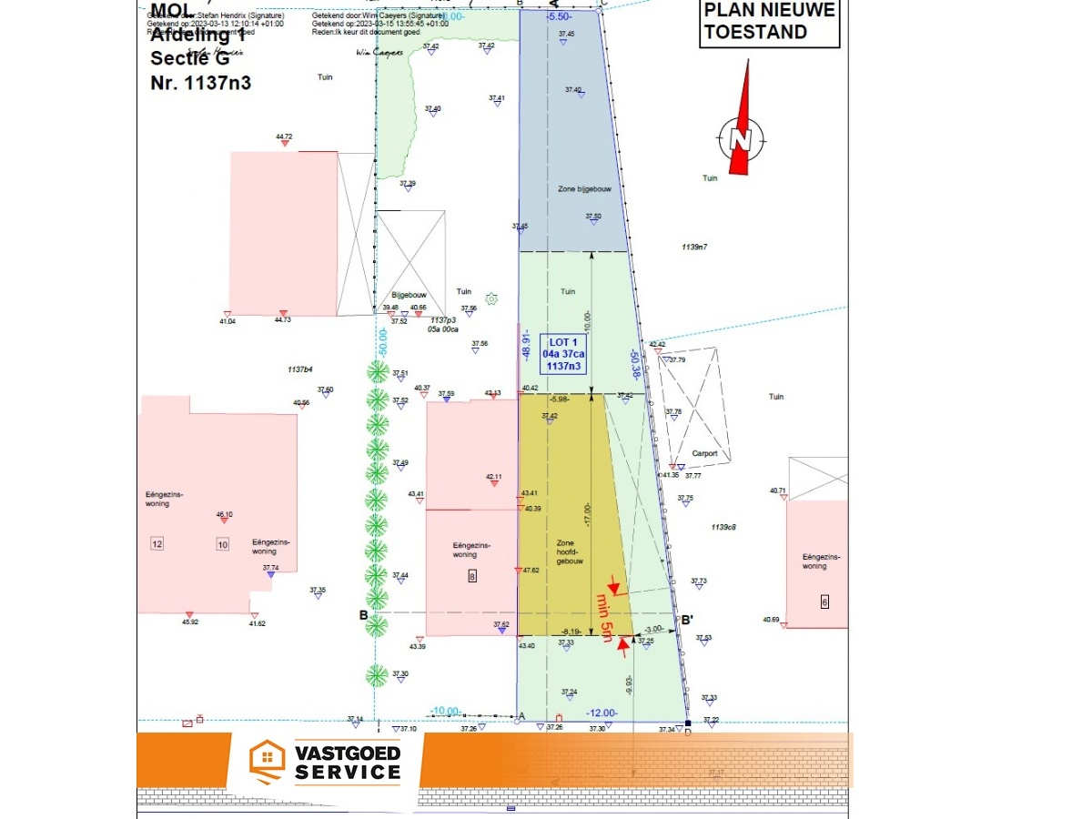 Bouwgrond Half-open bebouwing op rustige ligging! Deze bouwgrond van 437 m² met een straatbreedte van 12 m, (waardoor je een gevelbreedte van 8,12 meter kan bouwen, zie plan) die ook nog eens circa 49 meter diep is, ligt op een rustige en zeer gunstige locatie, op wandelafstand van o.a. een kleuterschool, basisschool en park de kiosk. Verder is deze bouwgrond gelegen op een boogscheut van enkele winkels, supermarkten, bakkers, apotheek, tal van sportfaciliteiten, horeca, fiets -en wandelroutes, zo ook is recreatiedomein de Keiheuvel vlakbij gelegen. Doch bovendien is deze bouwgrond ook zeer strategisch gelegen bij allerlei invalswegen richting Mol-centrum, Balen-centrum, Lommel, Geel, Dessel, enz… Voor verdere informatie kan U steeds terecht op ons kantoor. 014/82.15.15.