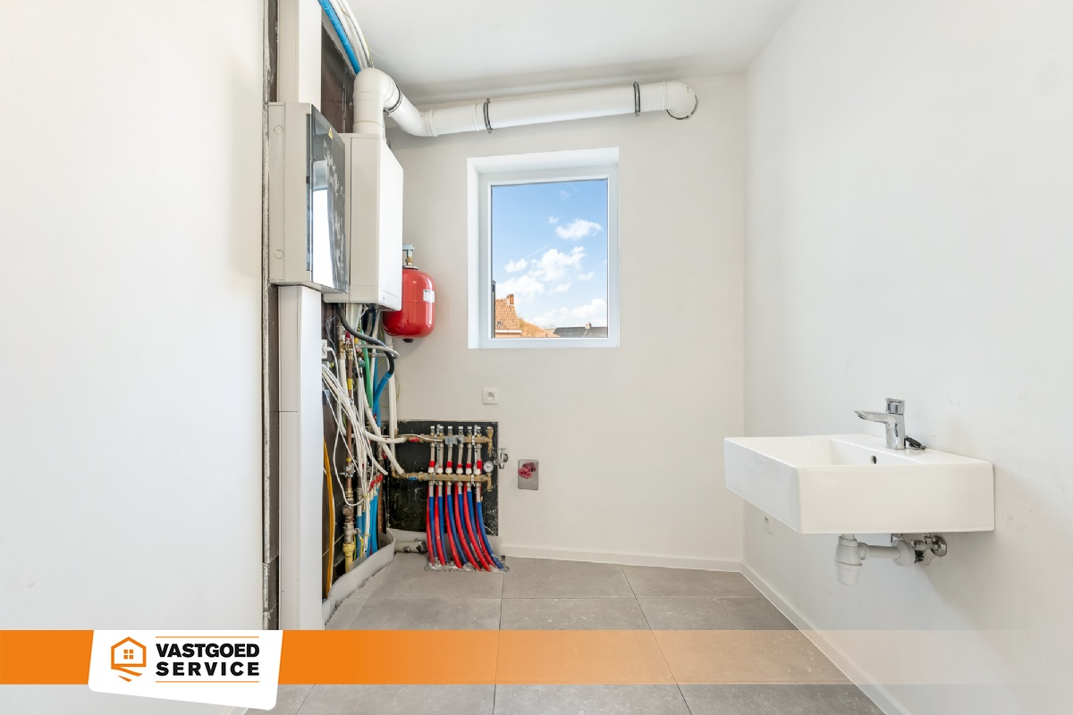 Nieuw ruim duplex appartement (145m²) in het centrum van Balen. Wilt u de ruimte van een woning maar geen grote tuin en liever een groot leefterras, dan is dit zeer ruim appartement zonder gemeenschappelijke kosten misschien iets voor u ? Het appartement is gelegen in een verkeersluwe straat, thans in de onmiddellijke omgeving (wandelafstand) van alle faciliteiten (school, tandarts, supermarkt, bakker, openbaar vervoer,..). Het appartement ligt op de 1ste en 2de verdieping en is via een eigen voordeur te bereiken. Via de inkomhal bereik je de trap naar de eerste verdieping. De eerste verdieping heeft een oppervlakte van +/- 89m². Op de eerste verdieping is er een gastentoilet, leefruimte, berging en open hyper uitgeruste (Dovy) keuken. Via het schuifraam aan de keuken, kan het ruime terras (26m²) worden betreden. Op de tweede verdieping vind je 2 slaapkamers en de badkamer, uitgerust met toilet, douche en wastafel en meubel terug. Bijkomend is er een aparte ruimte voorzien, ideaal als kantoorruimte voor thuiswerk of andere toepassingen. Tot slot is een opvouwtrap voorzien naar de bergzolder. Achteraan het gebouw zijn er twee private parkeerplaatsen (P5 & P6). Huurprijs: €1,175.00/maand | geen gemeenschappelijke kosten | beschikbaarheid: onmiddellijk | EPC: 51 kWh/m² (E36) (label A) I geen overstromingsgebied, P-score: A & G-score: A. Voor verdere informatie kan U steeds terecht op ons kantoor. 014/82.15.15.
