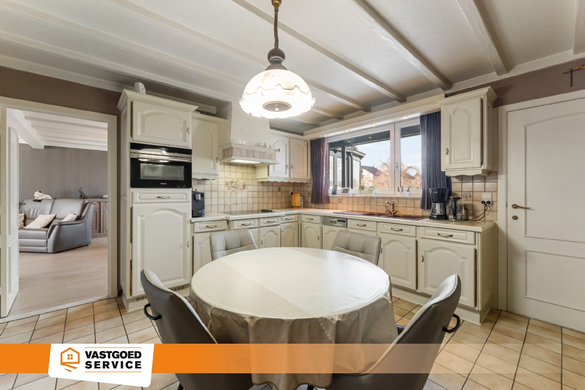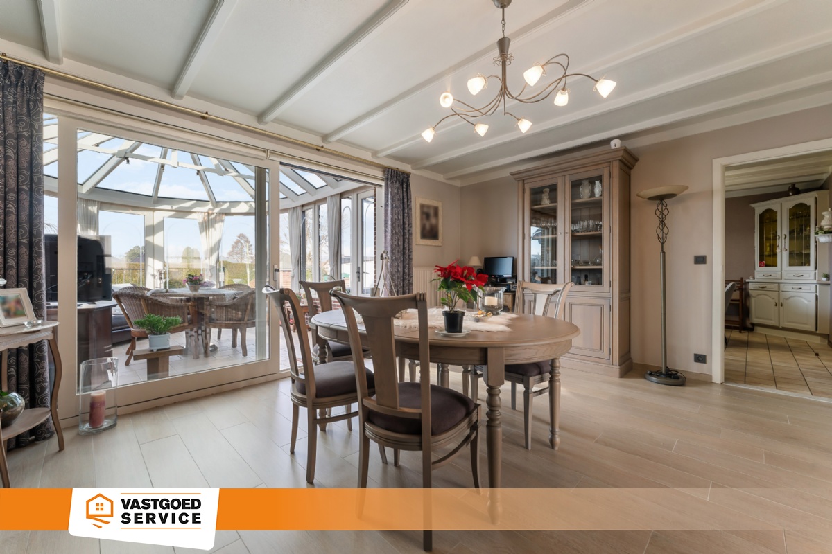 In een prachtige en rustige woonomgeving bevindt zich deze perfect onderhouden open bebouwing met een bewoonbare oppervlakte van ca. 210 m² op een perceel van 937 m². De woning beschikt over een lichtrijke leefruimte met knappe gashaard, een ruime veranda met zicht op de tuin en een volledig uitgeruste keuken. Op de verdieping bevinden 3 slaapkamers en een badkamer met ligbad. Bovendien is de woning volledig onderkelderd, wat zorgt voor extra ruimte en comfort. Bekijk zeker onze grondplannen op www.vastgoedservice.be een om een perfect beeld te krijgen van de indeling van deze woning! Bijzonderheden: * perfect onderhouden * zonnepanelen * verwarming op gas (condenserende ketel) * EPC D 307 kWh/m² (GEEN renovatieplicht) * praktische indeling * lichtrijke veranda met airco * badkamer met ligbad op het 1rste verdiep * achteraan is een functionele inkomhal met sanitaire voorzieningen (douche + wastafel) * inpandige garage met sectionale poort * aangelegde tuin met leuk terras en tuin berging. Voor meer informatie kan je terecht op ons kantoor. 014/82.15.15.