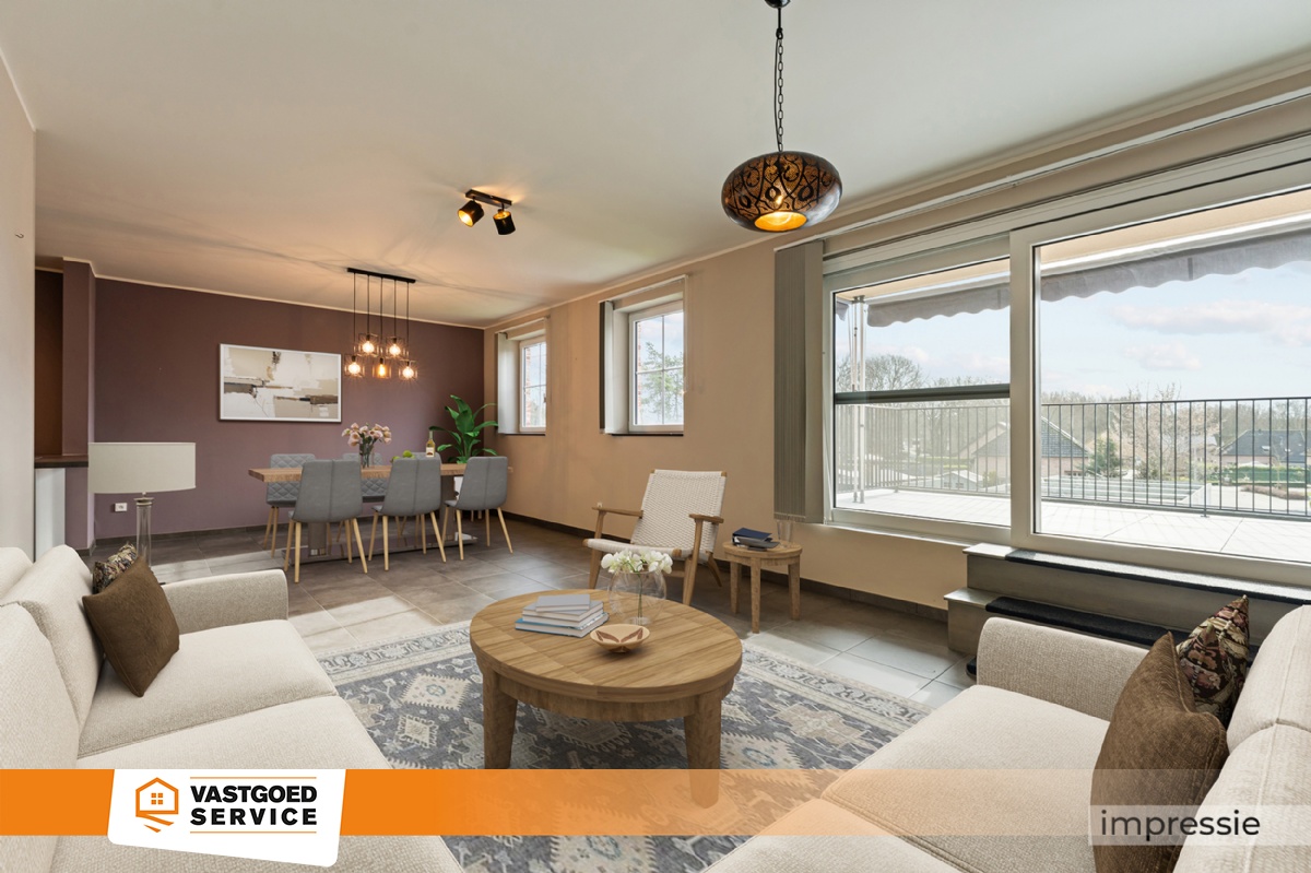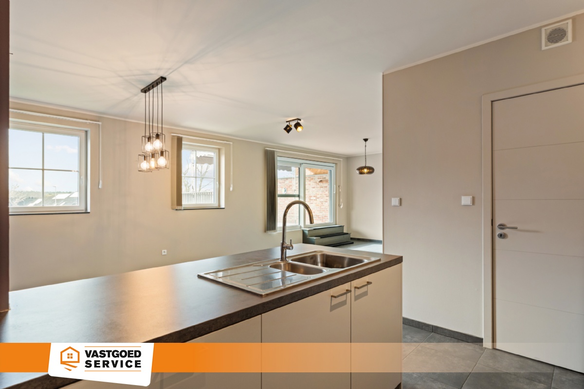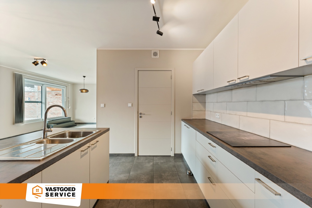 Dit recent en energiezuinig appartement met 2 slaapkamers is gelegen in een kleinschalige residentie op een gunstige locatie. Het appartement (115m²) bevindt zich op wandelafstand van het centrum, scholen (Atheneum en Sint Michiel), supermarkten en winkels. Bekijk zeker onze plannen op www.vastgoedservice.be om een perfect beeld te krijgen van de indeling van het appartement. Hier nog een opsomming van de belangrijkste toeven: * Praktische indeling * ruime en lichtrijke leefruimte * volledig ingerichte keuken * handige berging aan de keuken * 2 comfortabele slaapkamers (16m² en 12m²) * ruime badkamer met ligbad en douche * garage met sectionale poort * aparte staanplaats (auto) * gemeenschappelijk garage voor elektrische fietsen * lift * Elektriciteit conform * Energiezuinig EPC A * zuidgericht terras. Dit appartement is instapklaar en klaar voor nieuwe bewoners. Voor meer informatie kan je terecht op ons kantoor 014/82.15.15.