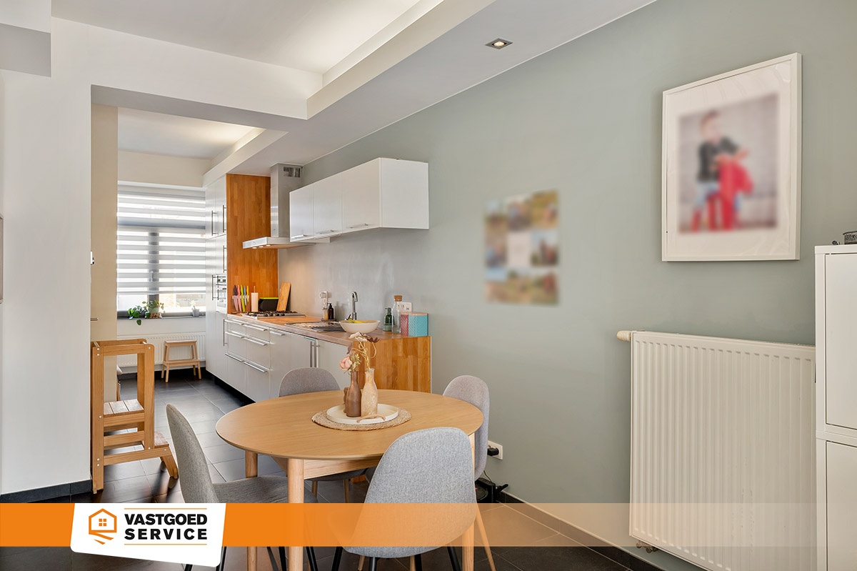 Deze instapklare leuke en gezellige stadswoning is supergoed gelegen in het centrum van Meerhout, op wandelafstand van alles. Momenteel zijn er 2 slaapkamers voorzien met een mezzanine die als logeerkamer en/of extra slaapruimte kan dienen. Ook is er een zon overgoten terras van circa 30m² voorzien. De woning is ook langs achteren bereikbaar, vuilbakken worden ook achteraan geplaatst. Ook is aan de voorkant gratis parkeren mogelijk in de straat. Verder troeven van deze gerenoveerde woning zijn : • Energiezuinig, geen renovatieverplichting en asbestveilig • Elektriciteit is conform • Praktische indeling van de woning met inbouwkasten in de leefruimte • 2 toiletten voorzien, zowel beneden als boven • SL 1 met inbouwkasten + airco (koelen + verwarmen), SL 2 + airco (koelen + verwarmen) • Automatisch rolluik vooraan • Keuken met vaatwasser, combi-oven, koelkast, vriezer, spoelbak, kookplaat op aardgas met dampkap Voor verdere informatie kan U steeds terecht op ons kantoor. 014/82.15.15.
